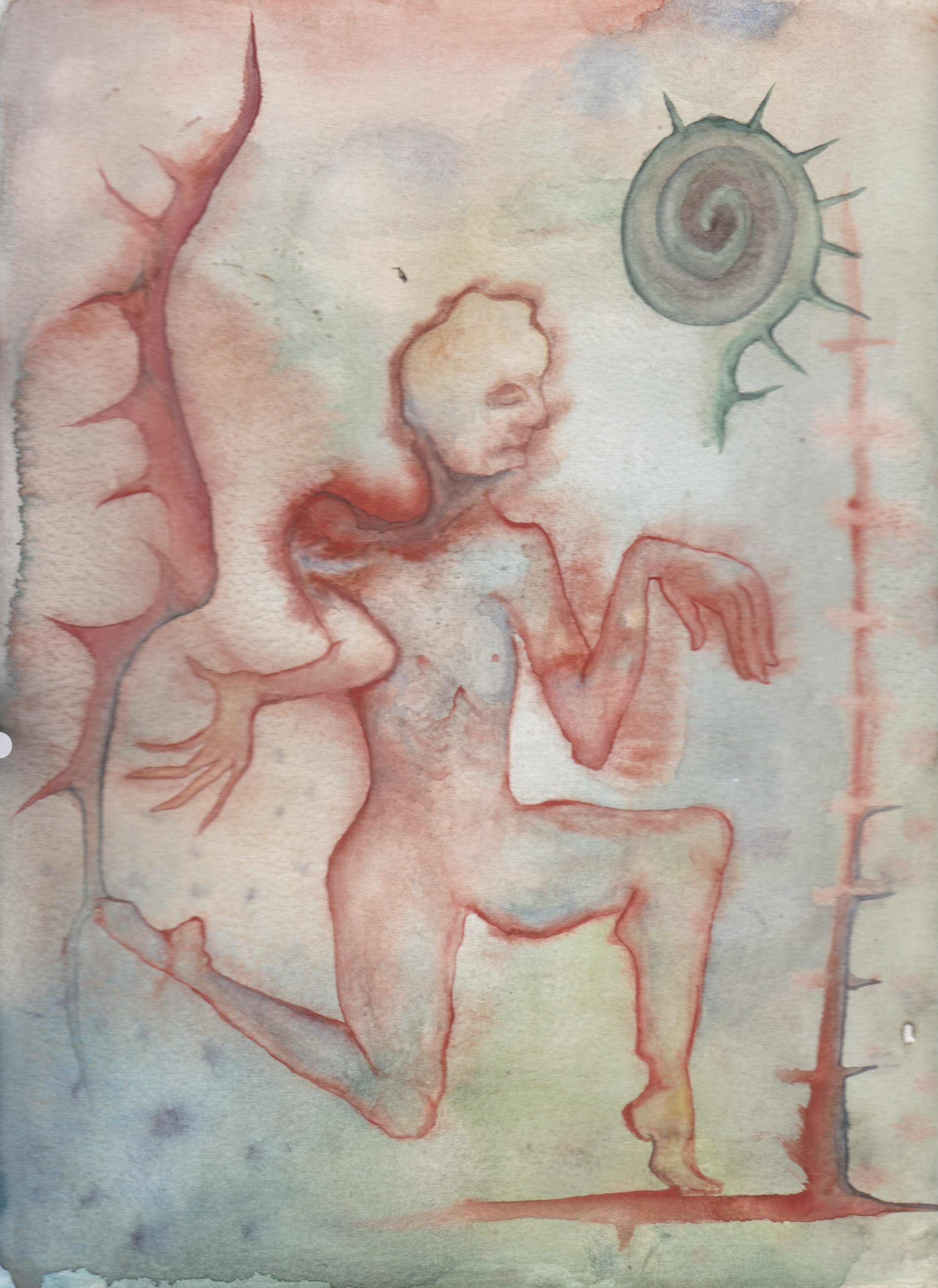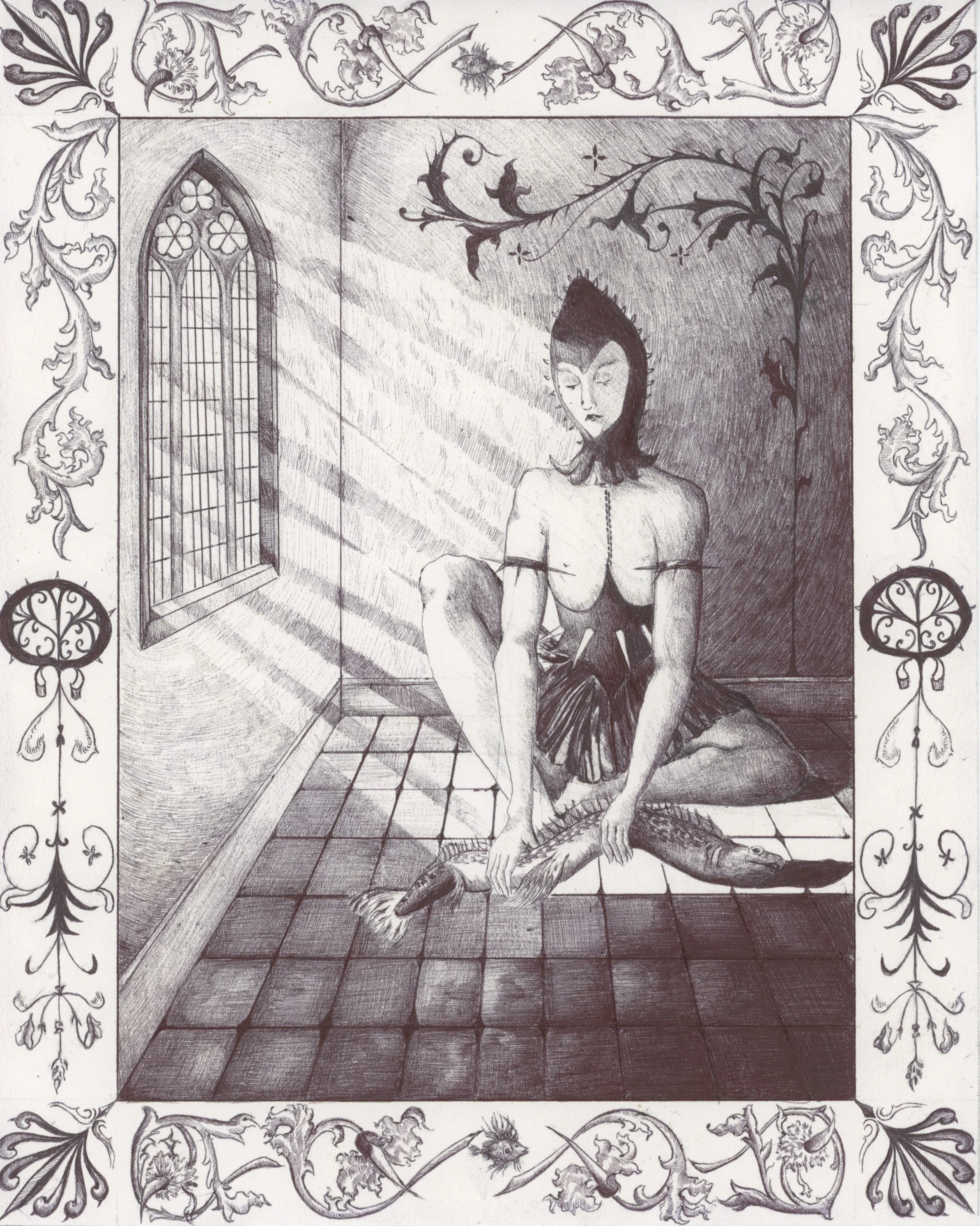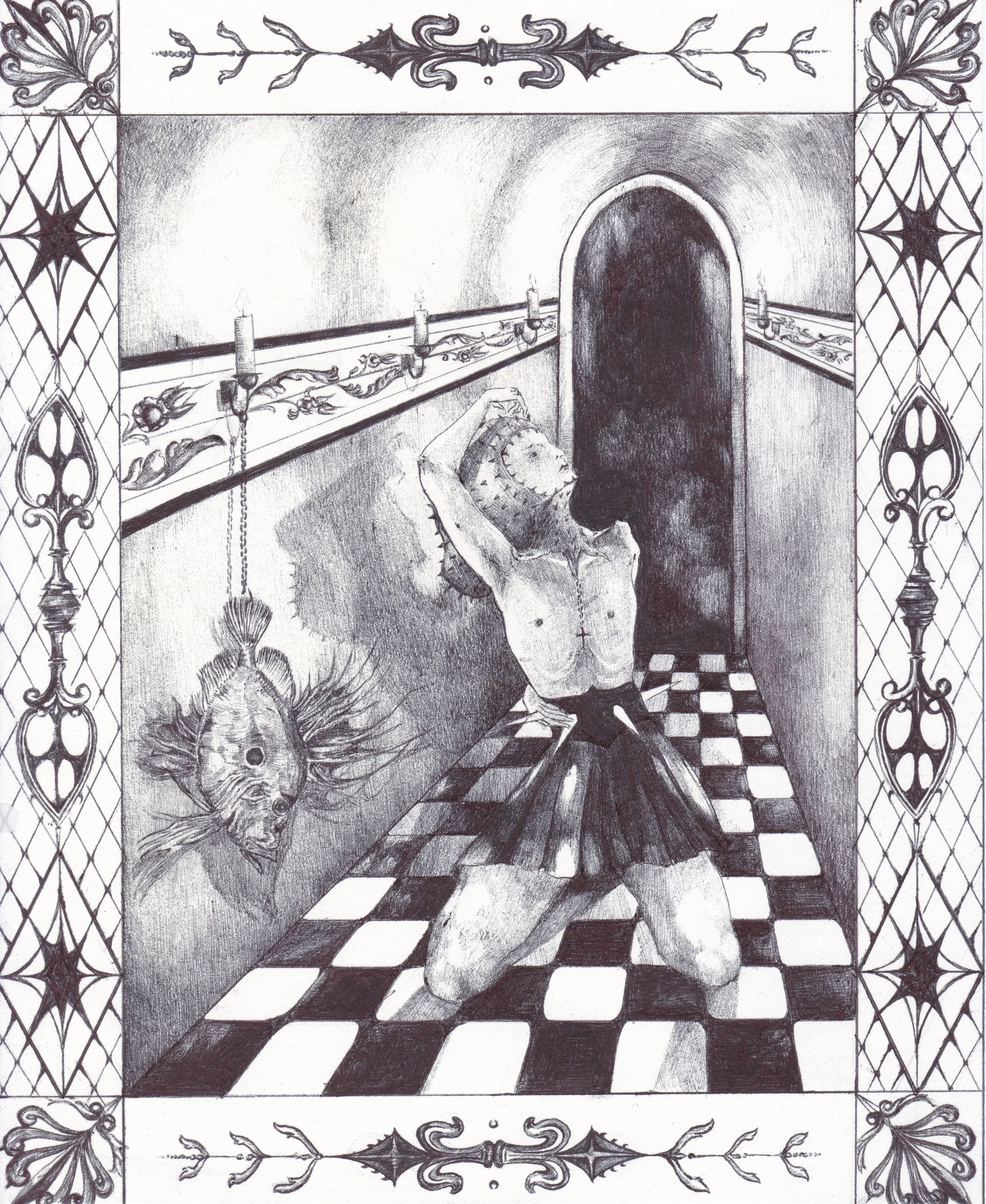 In its natural element, the fish is well adapted for survival; it belongs. Out of the water, it is weak and vulnerable, and yet in its unfamiliarity holds the power to incite fear and disgust within us. It can be imagined flopping and writhing and pulsating on the floor in a desperate bid to return home. It is this abject display that sits at the root of our discomfort. The figures in this series embody an urge to defile and dissect that which is alien to us, exerting punishment for the crime of dissimilarity. Through these morbid exploration, Eleanor seeks to create places of refuge among our weird and eerie convictions.